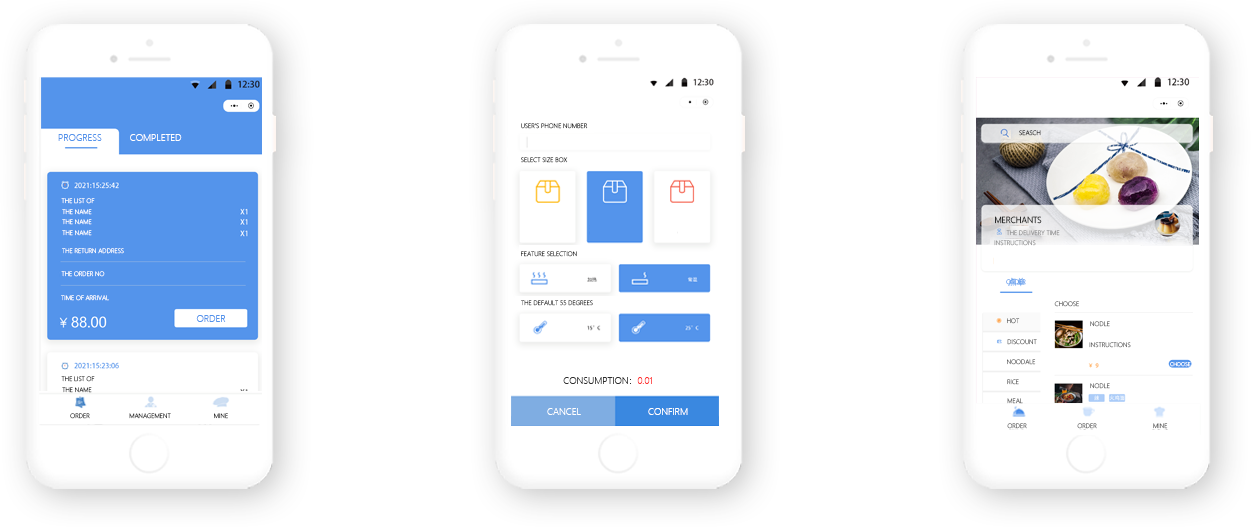 The mobile platform has the functions of ordering, payme-nt, ordering, food prepar-ation to the cabinet, reminding to take food and so on